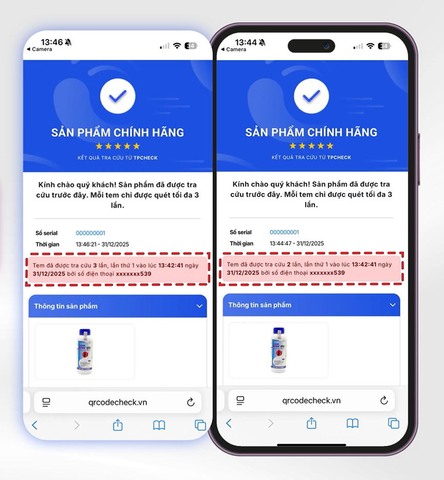 Khi khách hàng quét lần 02 và lần 03, sẽ nhận được thông tin chi tiết của lần quét đầu tiên.