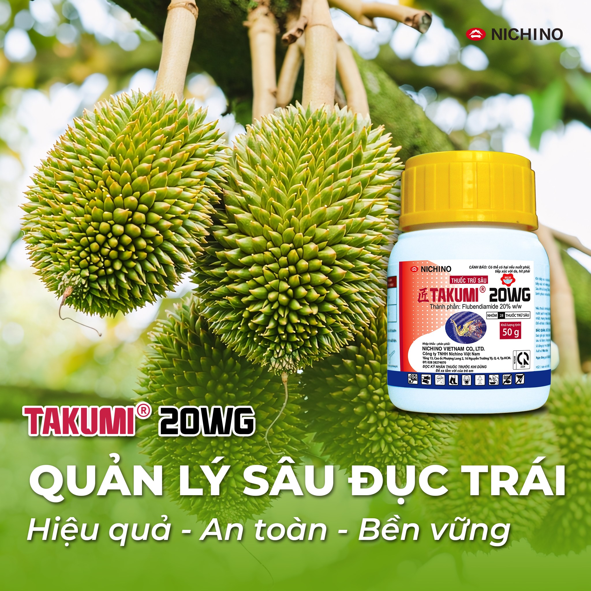 Để giúp bà con kiểm soát hiệu quả các loại sâu hại nguy hiểm trên sầu riêng, TAKUMI® 20WG mang đến giải pháp phòng trừ hiện đại, an toàn và bền vững.
